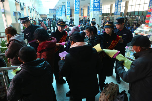 元旦期间,全国各地车站迎来小长假返程高峰,东港市公安局交通派出所向旅客开展涉危、涉爆等违禁品知识的宣传讲解,以保证广大旅客的平安出行。