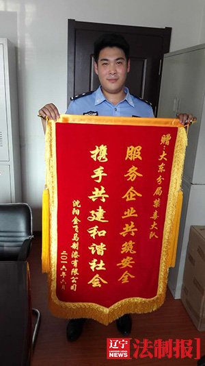 在锦旗中,记者还看到了一面落款是沈阳市民的,裴警官向记者介绍,记得那天一男子汗流满面地说:“两位大哥快帮帮忙,我亲戚把挎包落出租车里了,那里可有救命的钱啊!”