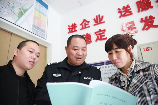 放下手机,他嘴里还叼着没有吃完的半个包子匆匆赶回了警务室。查户口、调档、打印证明,全程不超过20分钟,刘恩强就为员工孙凯办完了居住证,孙凯高高兴兴去提车了。