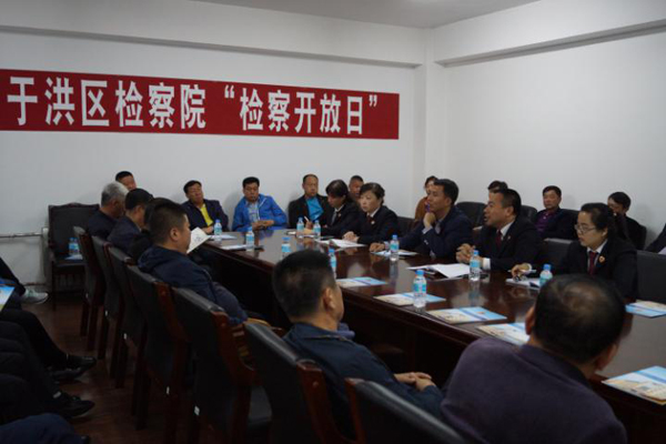 做好依法治区的促进者。为进一步推进检务公开,增强检察工作的透明度,密切检察机关与社会各界的联系,5月12日,于洪区人民检察院举行了2016年第一期“检察开放日”活动,邀请大兴街道、于洪街道30余名新当选的村党支部书记、村委会主任来院参观和座谈。于洪区人民检察院深化“检察开放日”“举报宣传周”等活动,采取请进来、走出去等方式,邀请社会各界走进检察机关,了解检察工作,并不断完善门户网站建设、开通律师“绿色通道”、推行一站式司法便民服务,依法为群众提供快捷方便的服务。还通过深化检务公开,让群众第一时间了解检察工作动态和执法办案信息,构建开放、动态、透明、便民的阳光检务。