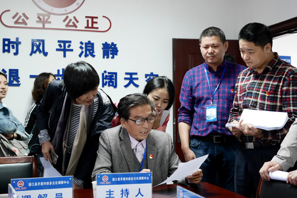 厉文梧是这个中心众多调解能手之一,调解能手大集合外,中心还建立了医疗、电商、学生伤害、婚姻家庭等14个专业性调委会,并把医疗等六大领域专业调委会集中到中心,同时加强与法院、检察院等司法部门以及各乡镇(街道)等的协调对接,“整合资源、整体联动”。对群众反映的各类矛盾纠纷,由中心统一受理、集中梳理、归口管理、分工负责、多方参与、依法化解,建立起多部门联合联动的“大调解”机制。另外,中心引入鉴定、评估、保险等机构设专人进驻或建立快速办理渠道,并对交办的矛盾纠纷明确办结时限,跟踪进展,定期督查,确保每一起矛盾纠纷均能及时有效地得到解决。