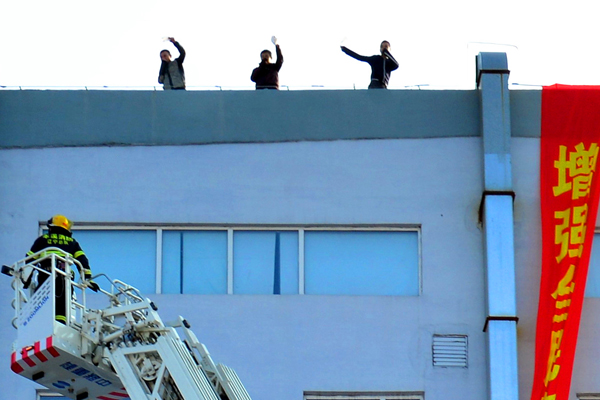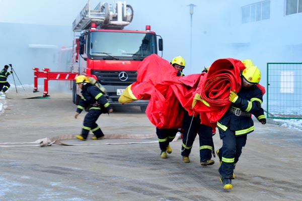 “我们在这里,快来救救我们!”几名被大火困在楼顶的群众向营救的消防官兵高声呼救。日前,本溪市公安消防支队组织了近百人的大型模拟火灾营救演练,在消防官兵指导下,近百名群众在“火海”中采取不同的方式有序地进行逃生和自救,经过半个小时的“火海”搜救和高空营救,消防官兵成功地疏散和营救了被困者。此次演练极大地检验了消防官兵救援能力,提高了广大群众的消防逃生自救能力。