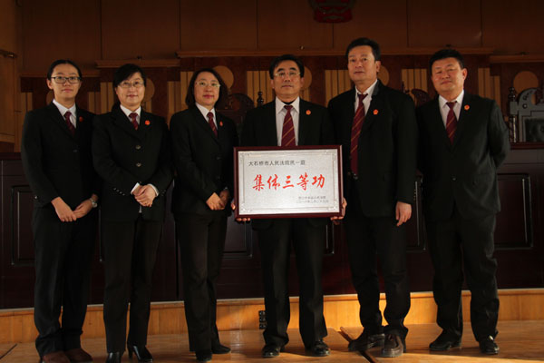大石桥市人民法院民事审判一庭以办案质量高、社会效果好、队伍管理过硬而在院里和社会上享有良好的口碑,由于集体表现优异,自2009年以来连续六年被大石桥市法院评为先进集体;2013年被大石桥市委、市政府评为人民满意政法单位;2016年庭党支部被大石桥市直机关工委评为优秀党支部;2016年被营口市中级人民法院荣记集体三等功。
