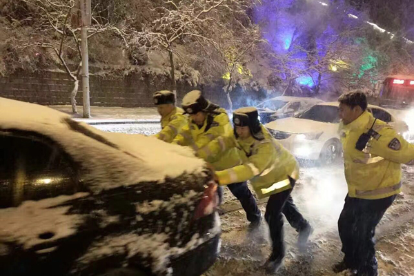 1月26日,本溪市普降大雪,强降雪给市区交通带来了一定的压力。期间,本溪市公安交警、辅警全员上路,坚守岗位,全力保障市民的出行安全。高速公路及市区各交警大队全警出动,奋战在市区主干道的峪明路、解放路、胜利路、人民路、平山路等主要道路及商业网点周围的道路上。由于是除夕前的强降雪,道路上出行人、车较为集中,尽管强降雪造成部分道路短时拥堵,但是通过交警积极疏导使得高峰时间段岗区(路口)没有出现大的拥堵。1月26日晚,本溪市委书记崔枫林、市长田树槐发来慰问电,对全体交警克服严寒,全力保障本溪市道路交通安全畅通所作出的工作给予充分肯定,并祝愿大家新年快乐。