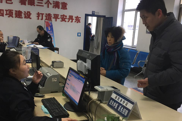 在沈阳市出入境管理局,刘国秀与办事群众亲切交谈