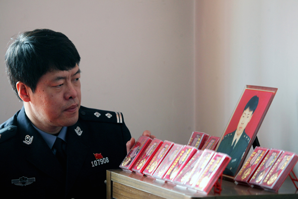 3月29日,林鹏和同事怀着崇敬的心情整理着赵建勇老主任的遗物。原沈阳市公安局铁西分局纪检室副主任赵建勇因工作繁重,积劳成疾,近半年的治疗未能遏止病情的恶化,3月19日,赵建勇离开了他的战友们。林鹏火线受命,走上了老大哥的岗位,这是他接任的第三天,纪检工作肩负更加重要的使命,需要刚正不阿,对林鹏而言更是铁血的锤炼。又是一年清明时,这个汉子也流露出他的柔情,他想起了公安战线上无私奉献的战友,想起了为公安事业、为人民牺牲的弟弟林涛……