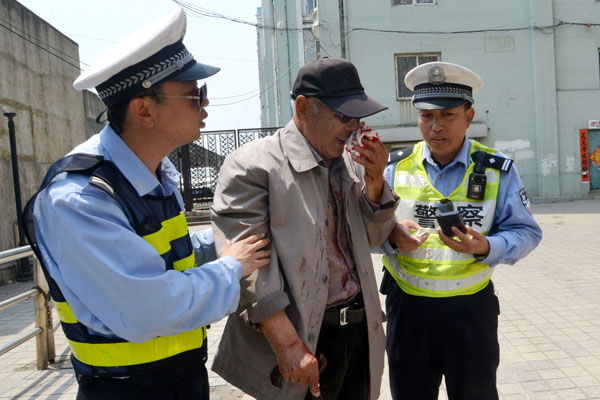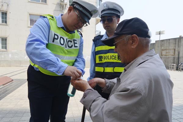 日前,丹东市公安局交警支队元宝大队民警在丹东市滨江中路8号坝门巡逻时,发现江边一位老人鼻孔流血不止,四人急忙下车搀扶住老人,并用纸巾帮老人进行止血。当得知老人今年已84岁时,民警立即与其亲属取得联系。随后,民警又用警车载着老人到医院,并陪伴老人做进一步检查,当得知老人没有危险时方离开医院。记者跟随民警用镜头记录下整个救助全过程。