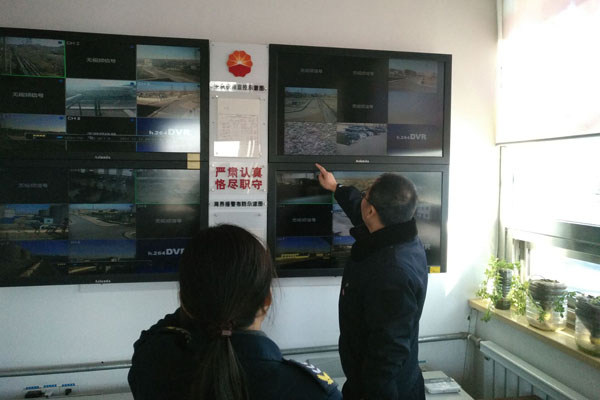辽河油田锦州采油厂油气监察站工作人员查看视频监控